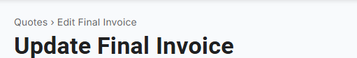 In the Final Invoice update flow, page header displays "Quotes Edit Final Invoice", which is misleading.