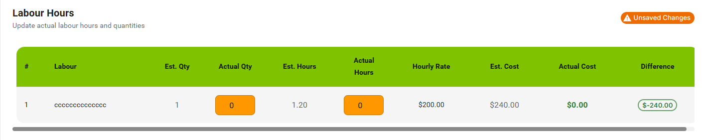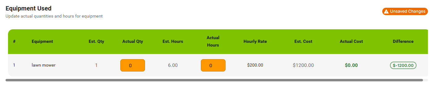 System allows invoice finalization even when all Product, Equipment, and Labour actual values are zero.