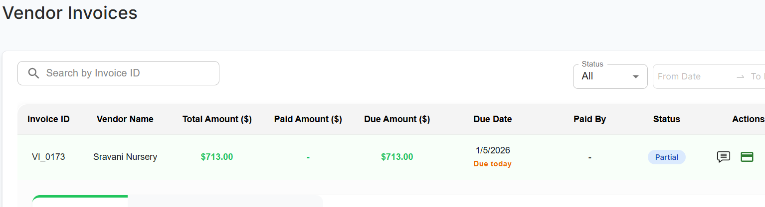 openVendor Invoices list page payments tab