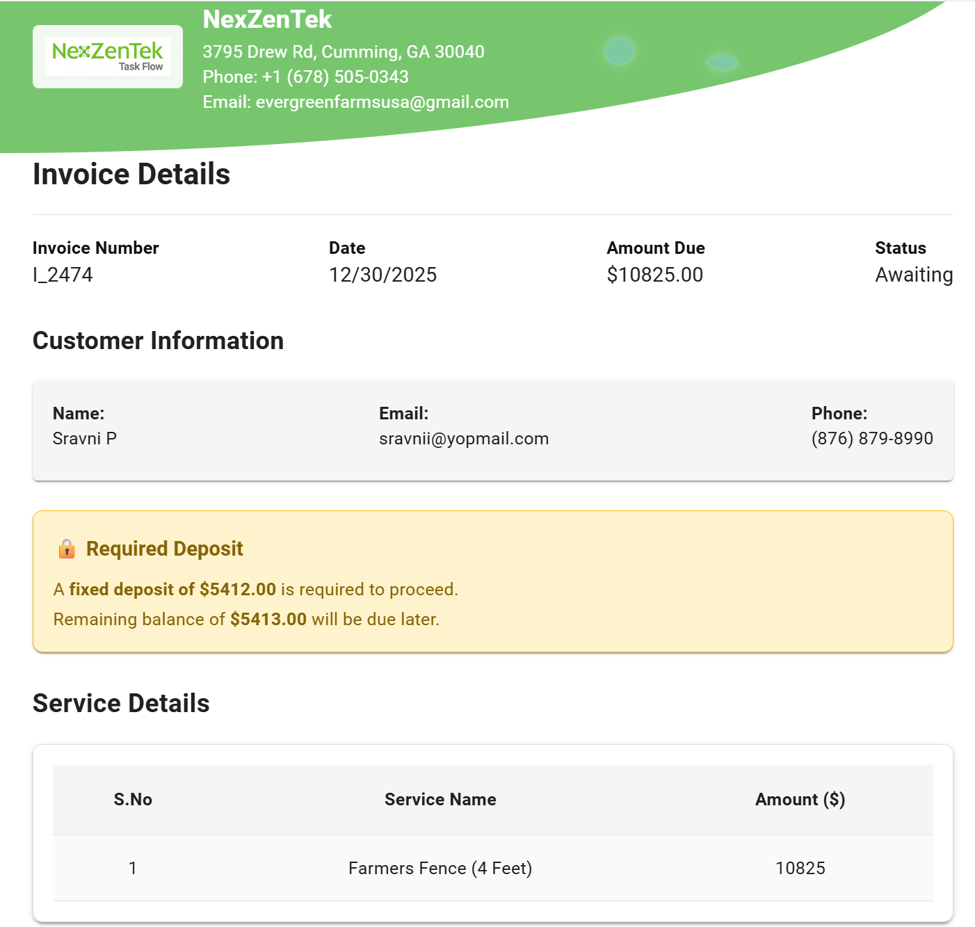 openInvoice Details payment page