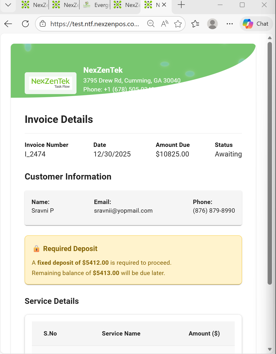 openInvoice Details payment page