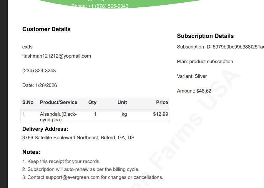 openshare products subscriptions plan - email issue -Delivery address missing in email receipt