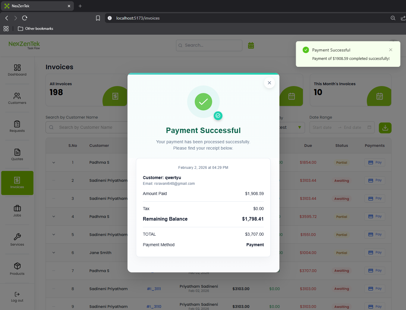 in quotes page pay ment was complete the strip was not geting