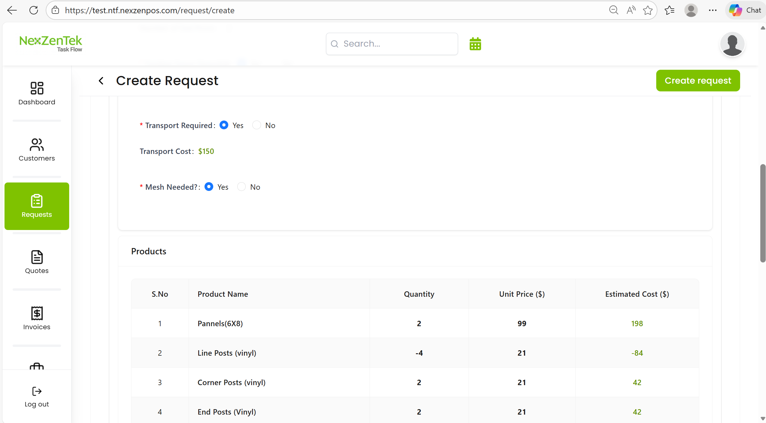 In the Request Create page, when selecting Service, the service should be shown only under the service section. However, the service is incorrectly appearing under the Product section.