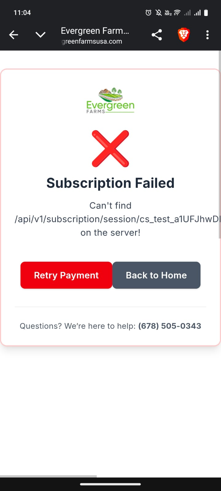 Service Subscription payment fails on Stripe submit (Customer & Admin flows)