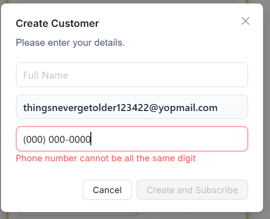 System should reject invalid phone numbers like all zeros.