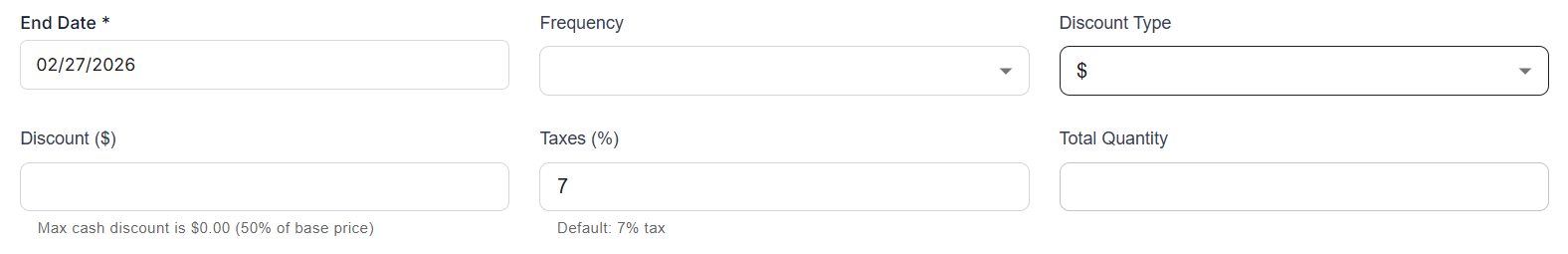 Discount field does not show $ or % indicator.