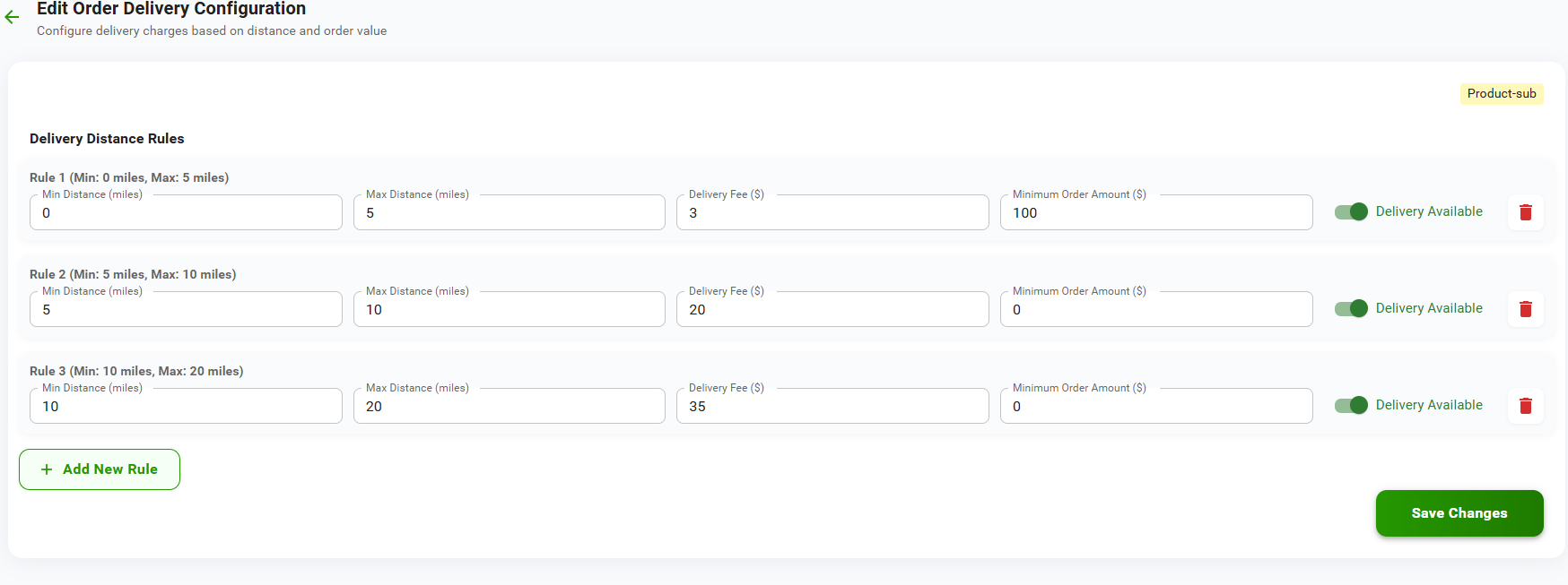 Admin → Product Subscription → Delivery Configuration