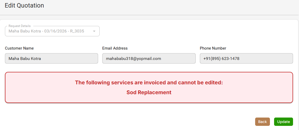 if the qoute is accepted then i click on edit its showing its not update invoice created but when i use update button