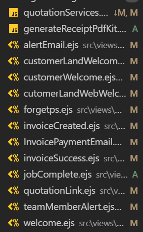 worked on customer quotation and invoice ejs files
