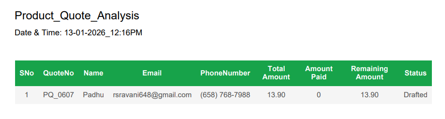 in product Quotes list page click the download in click pdf -> it not showing the what we give in list page