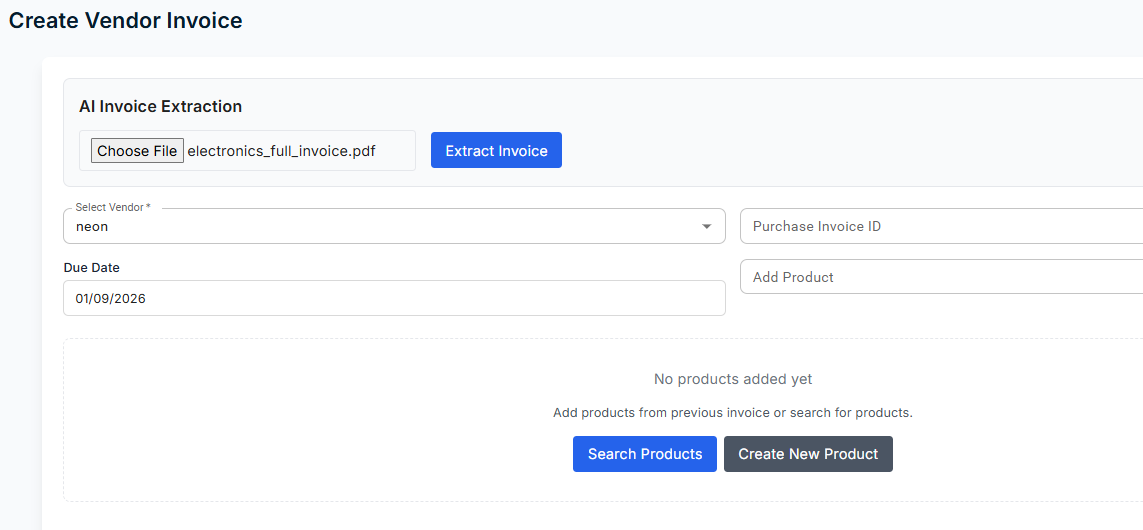 openCreate Vendor Invoice – Search Products button not working
