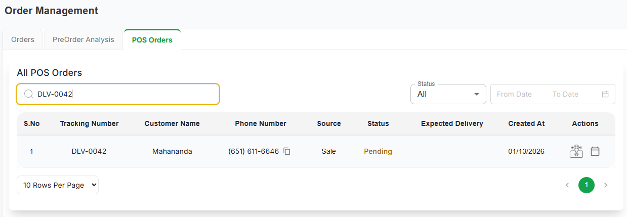 POS Orders – Search by Tracking Number not working