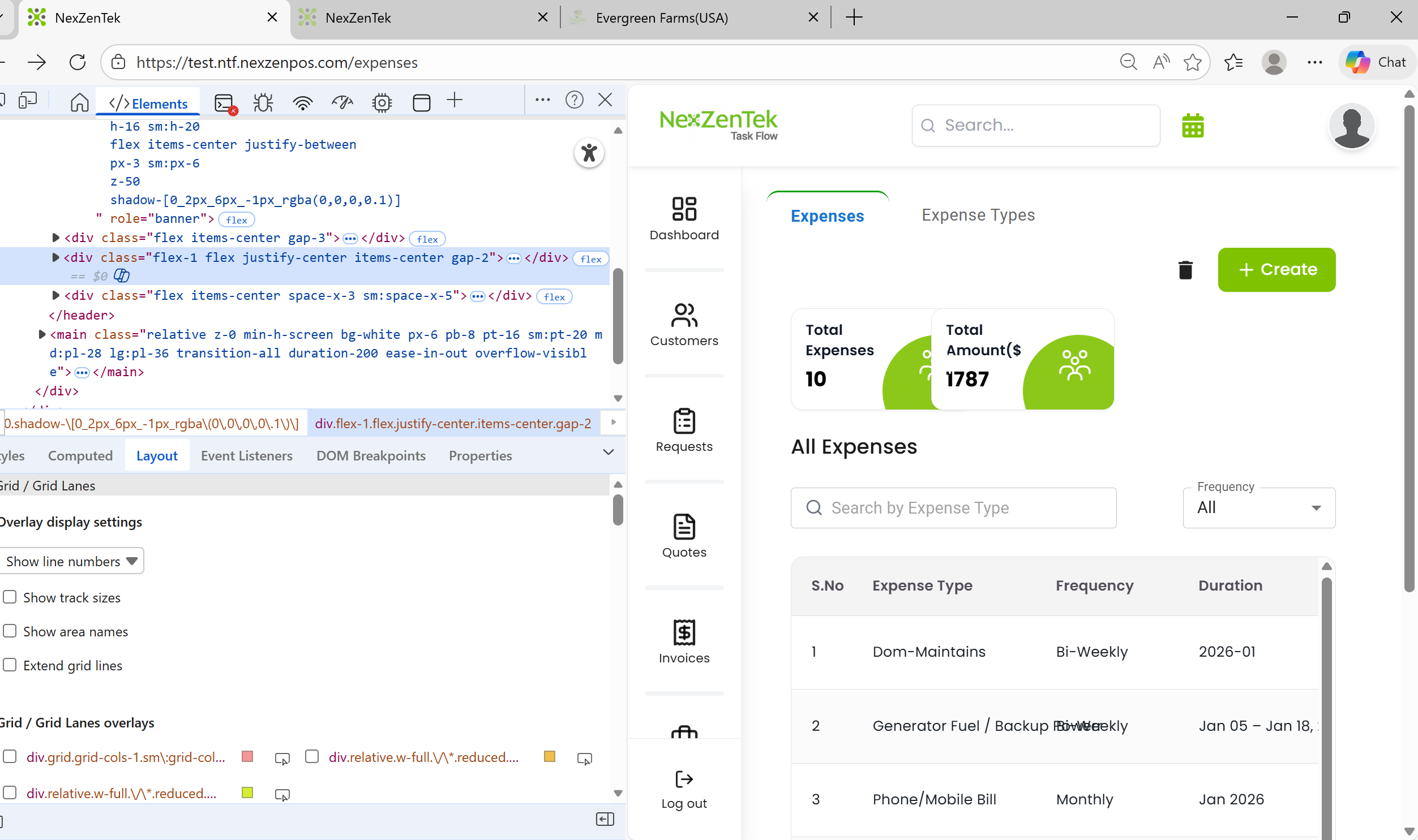 Inspect page should open correctly without affecting the Expenses page layout.