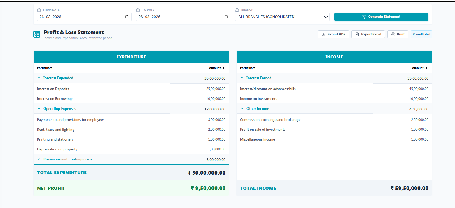Today I gathered real-world banking business data and implemented it across 5 complex financial reporting screens in the Consolidated Reports module. These are among the most data-intensive screens in the entire application, each requiring hierarchical ledger structures and precise financial accuracy.